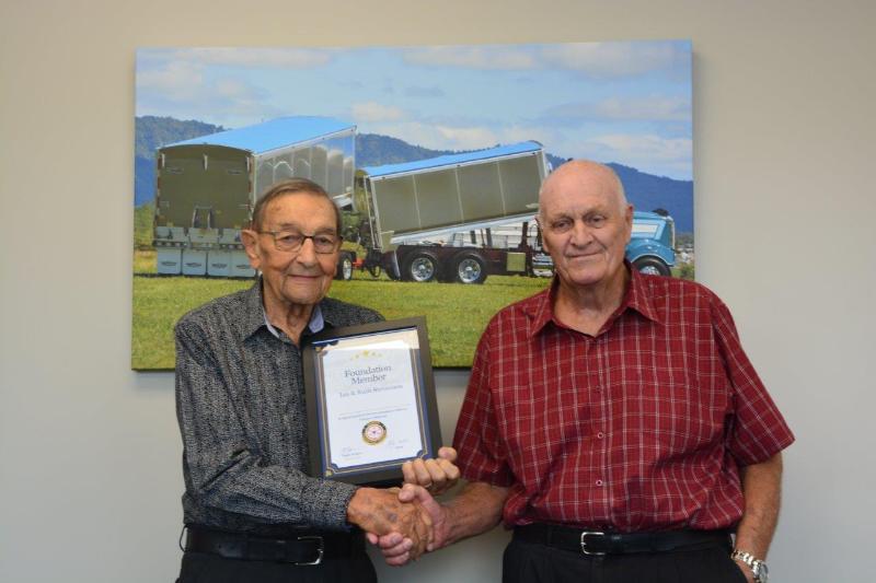 Museum Trustee Lewis Clotworthy presents a certificate of gratitude to the museums first donation recipient Ian Stevenson.